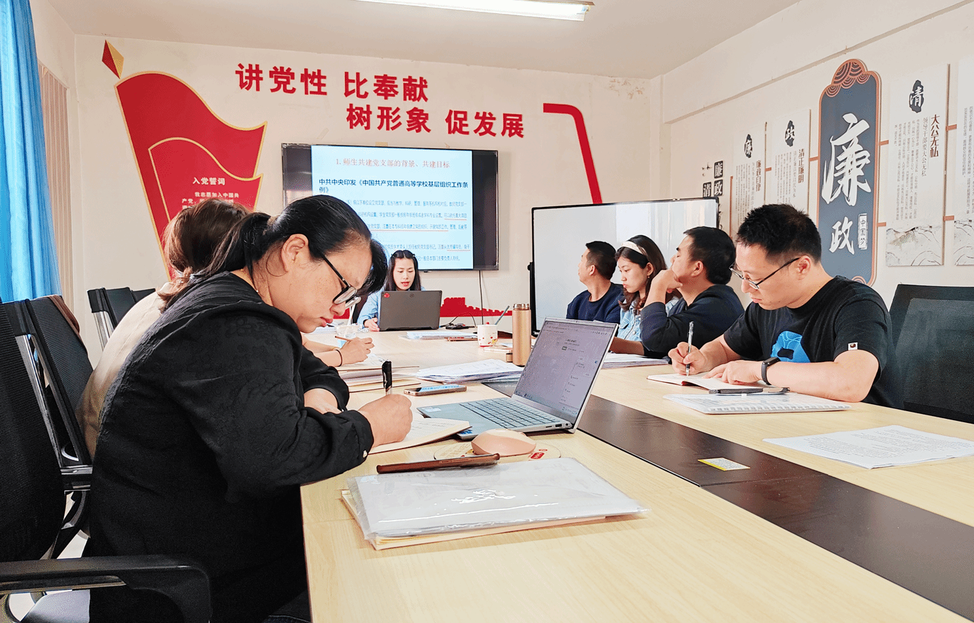 甘艳丽从高校师生共建党支部提出的背景、共建目标、党支部的基本任务、“三会一课”的内涵及如何规范开展“三会一课”、做好基层党支部书记的若干思考、党员发展程序等方面,结合建环学院党建工作实际,进行了专题分享,为全体党务工作者加强理论学习、提升能力素质及支部党建工作的开展,提供了一个很好的互学共进交流机会。