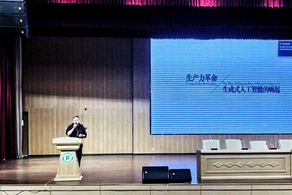 为紧跟科技发展前沿,拓展师生视野,10月28日下午,建环学院在俊贤厅成功举办了“生产力革命——生成式人工智能的崛起”专题讲座。本次讲座特邀成都思为交互科技首席人工智能模型训练工程师蒋朋轩担任主讲,建环学院院长秦朝昭、党总支书记鲜金宏与学院学生会成员、全体大一学生及部分高年级学生共同到场聆听。整场讲座内容翔实、视角专业,现场气氛热烈。