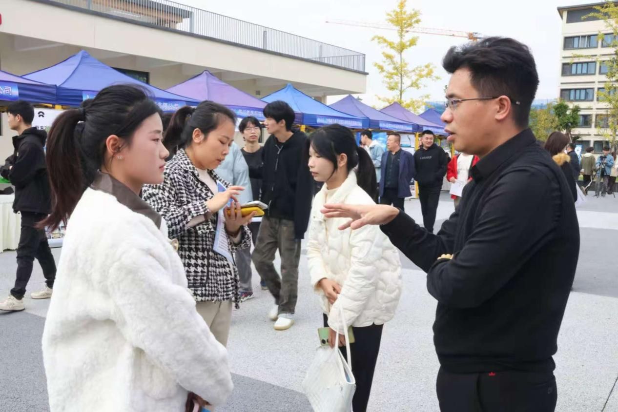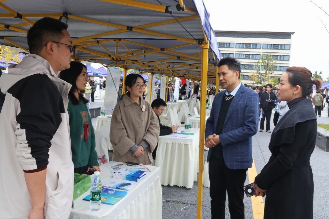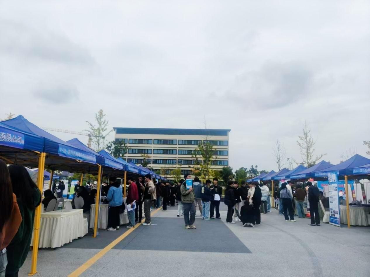 11月11日,建环学院在邛崃产教园区华章餐厅前广场举办2026届毕业生秋季校园招聘会。校党委常委、副校长蒲冰远,学创处处长杨舜如、副处长刁家志,建环学院院长秦朝昭、党总支书记鲜金宏及毕业班辅导员、各专业负责人到场。本次招聘会旨在为毕业生搭建优质就业平台,助力实现高质量就业,引导青年学生成长为“有理想、敢担当、能吃苦、肯奋斗”的新时代好青年。