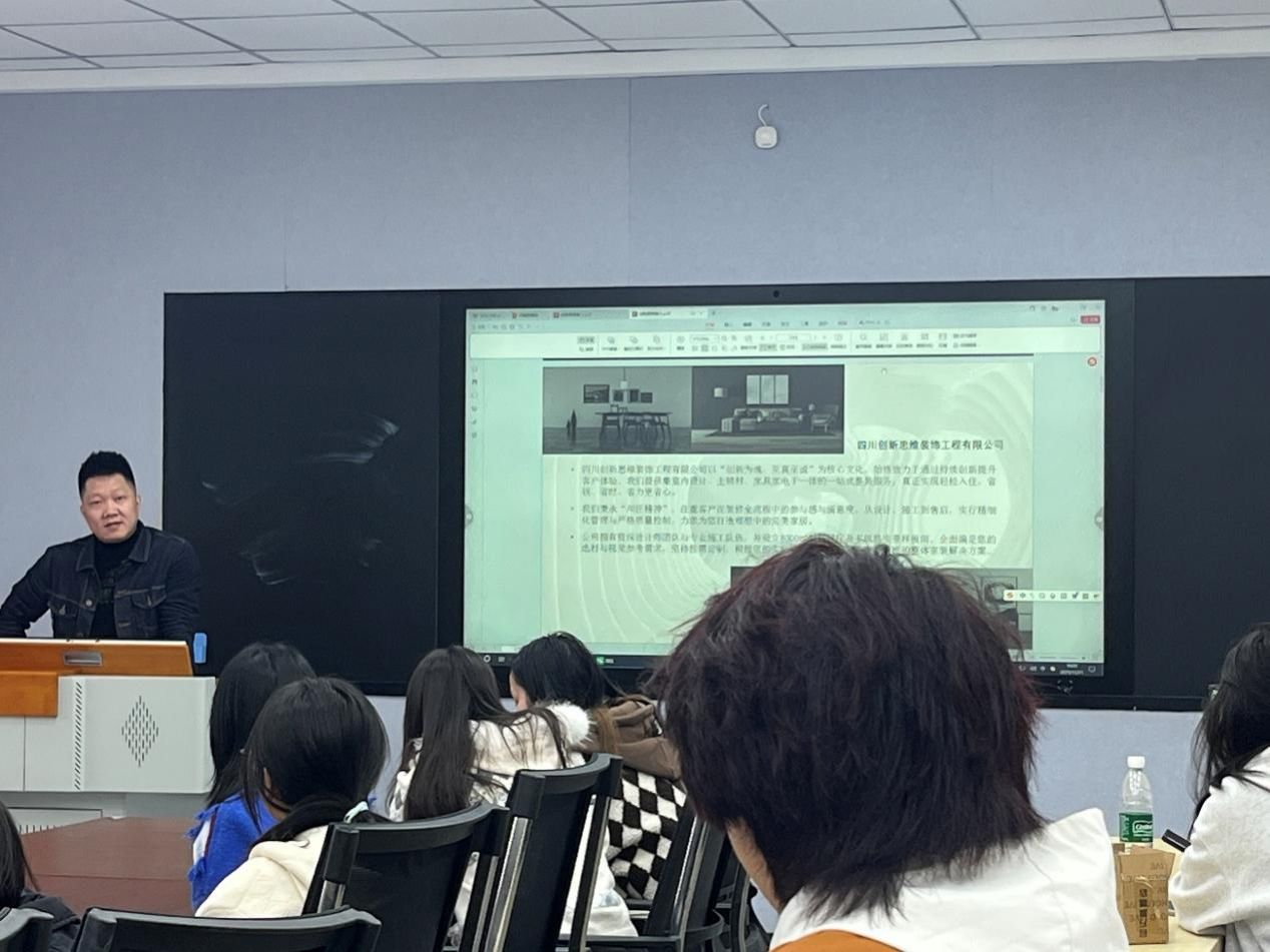 思维装饰企业宣讲团队以“家居整装全链条服务”为核心,向同学们展示优秀整装案例,并生动剖析从客户需求调研、空间设计规划,到材料选配、施工落地的完整服务流程,重点强调了企业对设计人才在“创意与实用功能融合”方面、对营销人员在“客户需求洞察”方面的能力要求。此外,宣讲团队还详细介绍了公司完善的员工培训体系与激励机制,鼓励有创新思维、热爱装饰行业的建环学子加入,共同探索家居整装领域的职业机遇与发展空间。