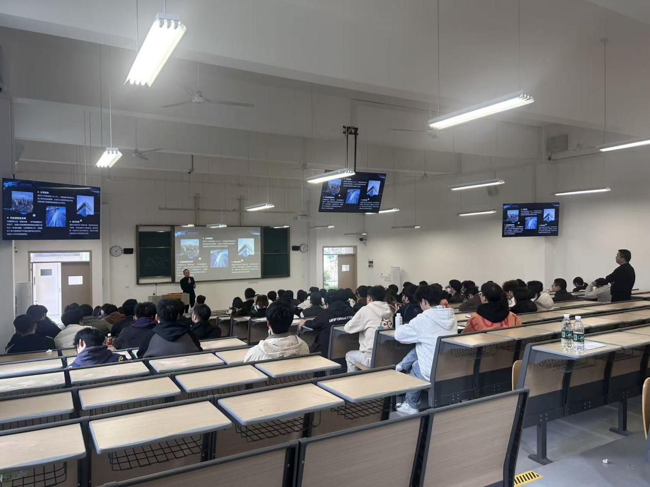 金鹏建筑公司招聘负责人围绕公司发展历程、业务布局展开介绍,重点讲解了建筑施工项目从筹备到竣工的全流程运作模式,以及对现场管理人才在安全把控、进度协调、质量监督等方面的能力需求。该公司为学生提供涵盖建筑施工管理、工程设计、造价咨询等多领域的岗位。互动环节,针对学生关心的职业晋升路径、项目实践机会等问题,公司负责人一一给予清晰解答,帮助同学们更深入了解建筑施工领域的就业方向。
