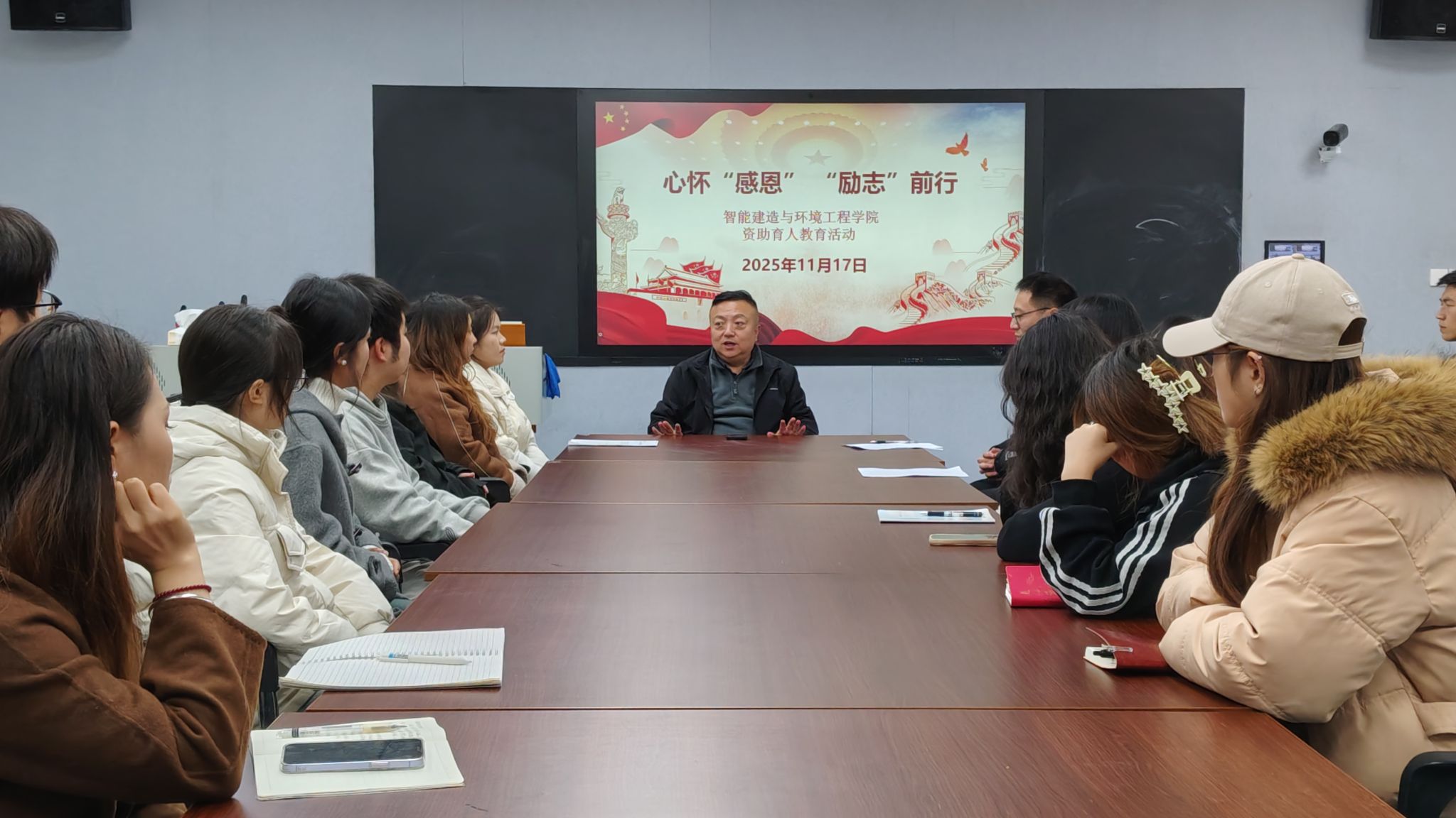 11月17日,建环学院在邛崃产教园区行知楼A306开展以“心怀‘感恩’,‘励志’前行”为主题的资助育人教育活动。学院党总支书记鲜金宏、专职辅导员朱晓飞以及2025年国家奖学金、国家励志奖学金获得者参加活动。