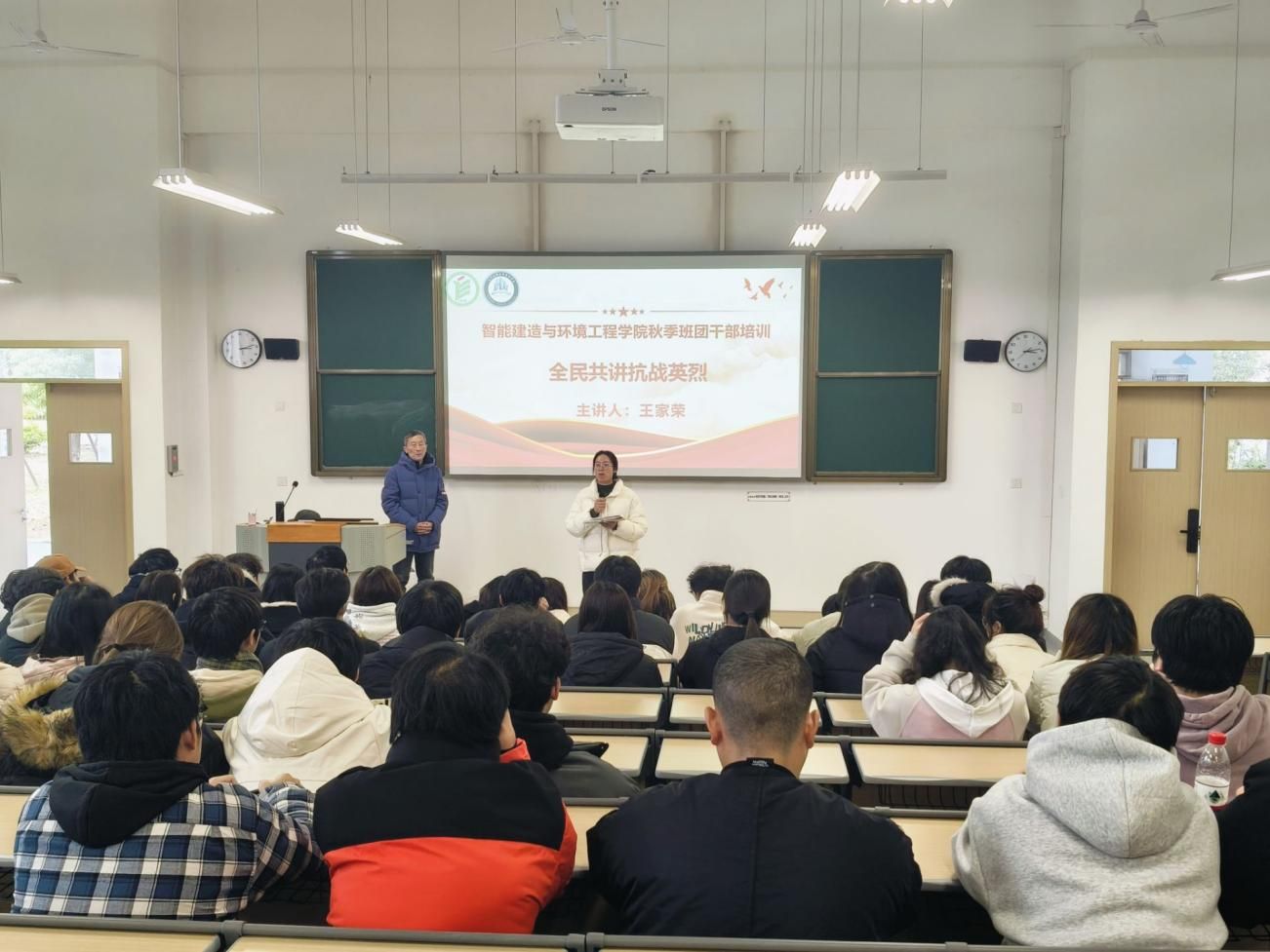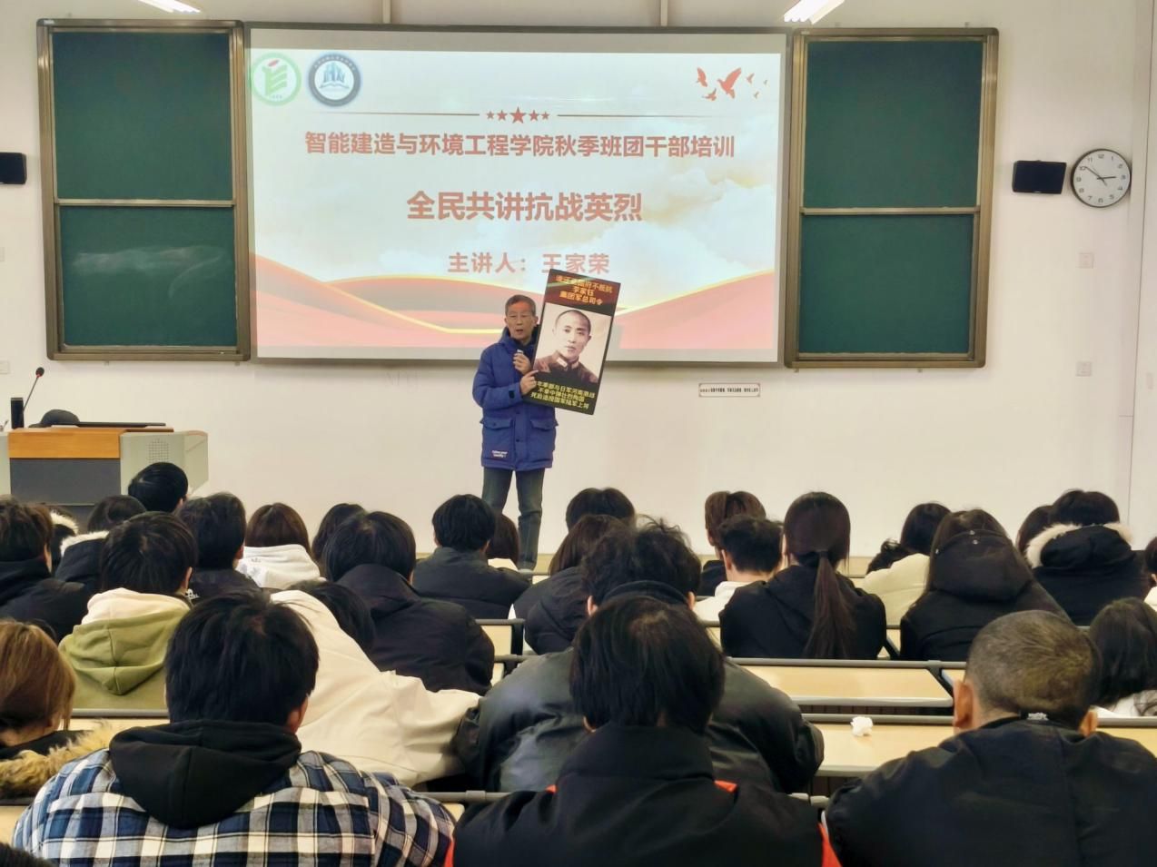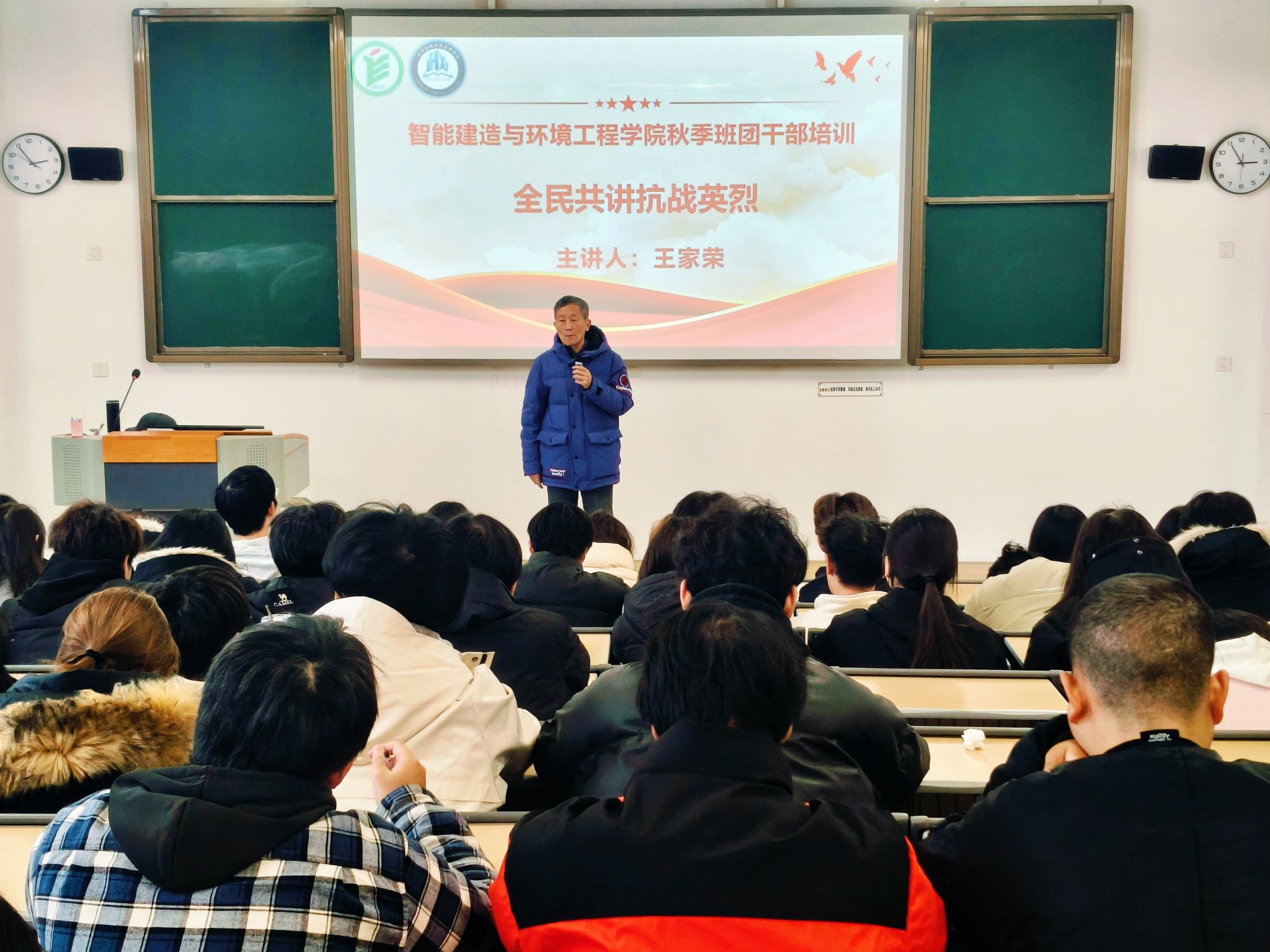 11月18日,建环学院团总支在邛崃产教园区知著楼D102教室举办2025年秋季班团干部培训。中国好人、成都市关心下一代工作委员会先进个人王家荣担任主讲,他以“全民共讲抗战英烈”为主题,为全院班团干部作了一场生动的红色文化宣讲。