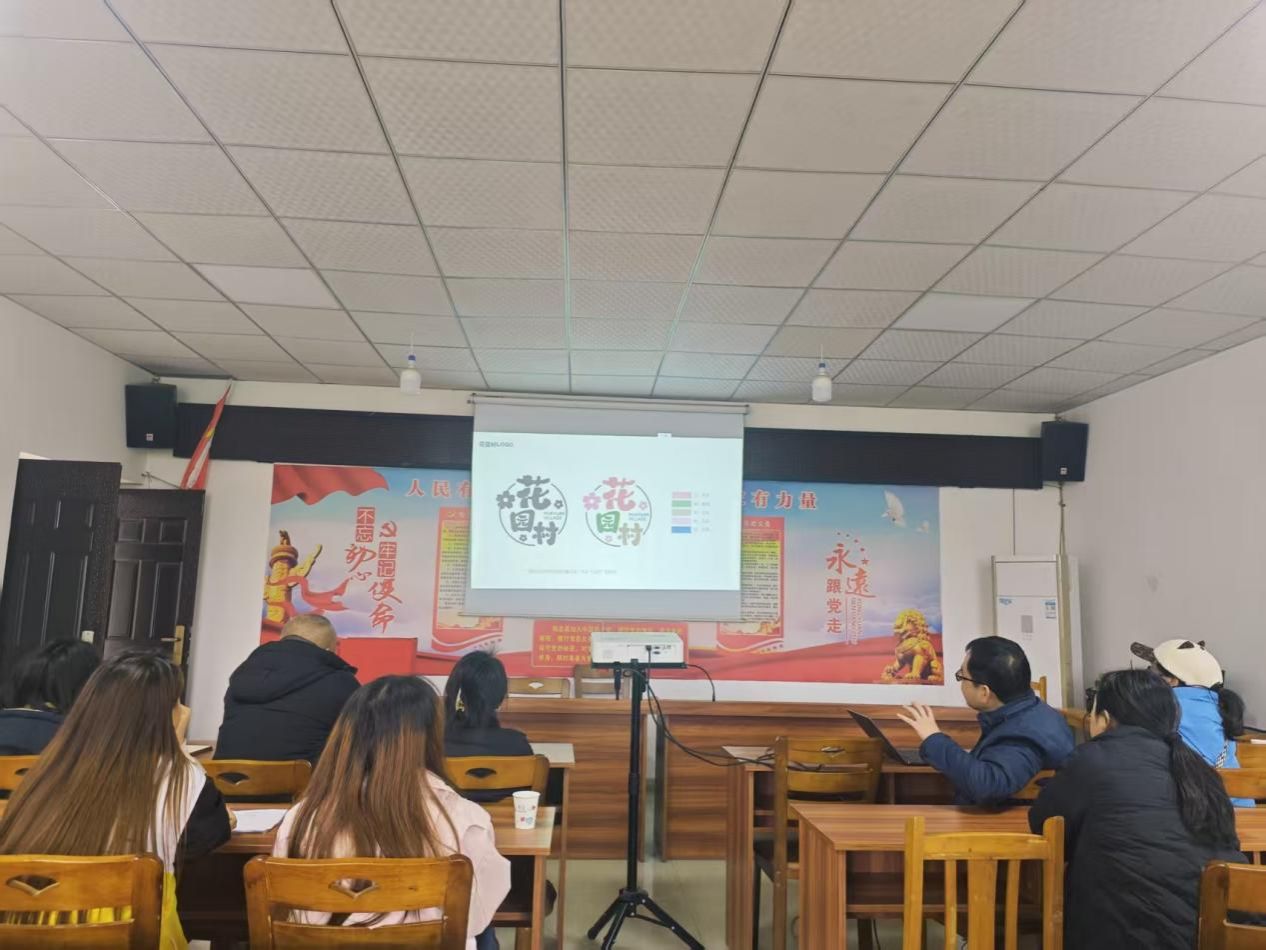 花园村党总支书记张耀丹、副书记赵永华、妇女主任叶文英及村委会、春蕾联营社社区工作人员到场听取汇报。会上,师生团队围绕“一路繁花”的核心定位,从设计原则、节点打造、局部改造及居民环境优化等方面展开详细阐述。方案深度保留乡村本真基调,以创意墙绘为核心表现形式,融入现代潮流与二次元元素,通过四季繁花主题营造沉浸式花语意境;同时规划入口标识、花园故事墙、丰收主题加工房等特色节点,并针对道路优化、民宅美化、卫生站标识提升等具体场景,给出系统性改造方案。