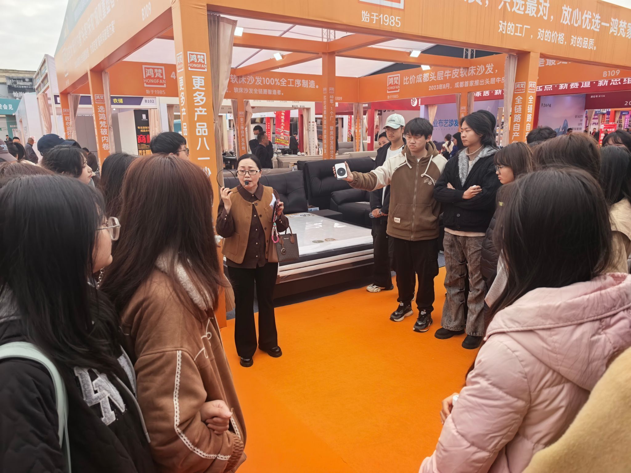 展会上同学们重点关注到展会创新打造的“线上+线下”双展模式,这一模式也为室内设计的创新实践提供了新思路。线下展区以沉浸式场景展为核心,通过实景家居空间搭建、特色展位设计,直观呈现前沿家居生活方式,让同学们清晰看到设计方案如何落地为真实空间,深刻理解“设计既要好看,更要好用”的核心原则;线上搭建常态化电商家居云展,实现品牌与买家全年不间断对接,这种数字化、常态化的展示模式,让同学们认识到数字化技术对室内设计行业的深刻影响,拓宽了专业视野。