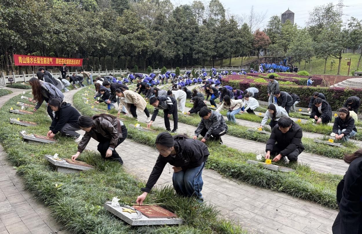 随后,全体师生有序前往烈士墓区,怀着崇敬之心擦拭烈士墓碑、敬献鲜花,以实际行动表达对革命先烈的感恩与铭记。
