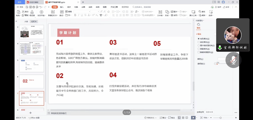 团总支学生会六个部门分别作工作总结汇报,对本部门2022年的工作内容进行梳理,展示工作成果并进行总结分析工作中的不足之处,提出改进措施,对2023学年的部门工作进行安排。学生会主席王钊先从整体进行了总结,特别强调提出各部门干部干事积极性有待提高。