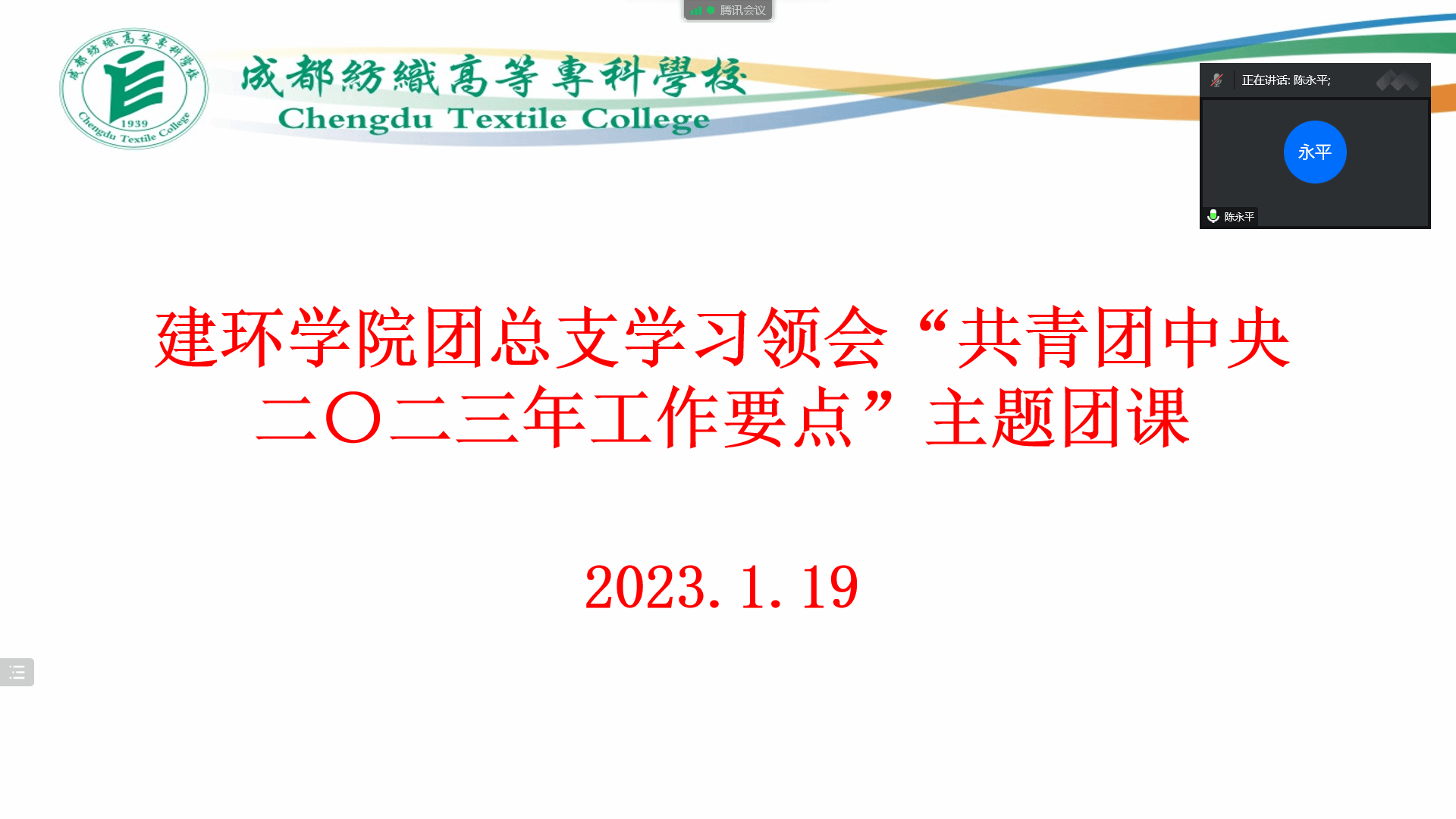 1月19日上午,建环学院团总支开展《共青团中央二〇二三年工作要点》(以下简称《工作要点》)主题团课学习活动。学院党总支副书记兼团总支书记陈永平作主题团课报告,专职组织员兼学生党支部书记甘艳丽、专职辅导员程鑫,学院团总支学生会主要干部及各班级团支部书记、班长及支委委员共计160余人听取报告,报告会由程鑫老师主持。