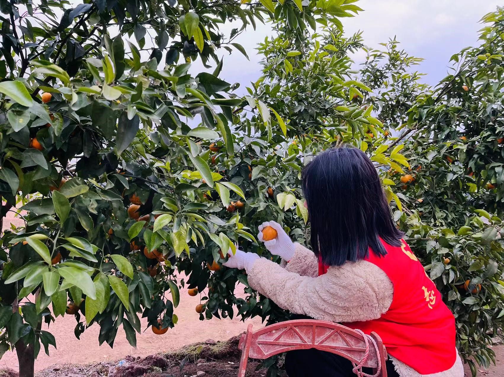 环艺224班杜晓静同学在南充市江陵镇琴台寺村参与了“守望相助,志愿助力果农”采摘活动。在上任工作的第一天,她还不太适应和其他同事交流,行事间总显得有些怯懦小气,同事们都热情友好,并夸赞她沉稳做事细心。采摘过程中,刚开始由于生疏摘坏了好几个果子,便向果农请教,果农很详细的讲解了怎样挑选鲜果,怎样采摘等等,她听的也十分用心,细心做好了笔记。后面定下心来,不急于求成,一个一个小心的采摘,慢慢的桶里鲜果越来越多。因为长时间的蹲起和手上不停的动作,肌肉格外酸痛,但她认为虽然很累,但更多的感觉是成长,培养了独立思考、独立工作和独立解决问题的能力,锻炼和提高了自己的能力。