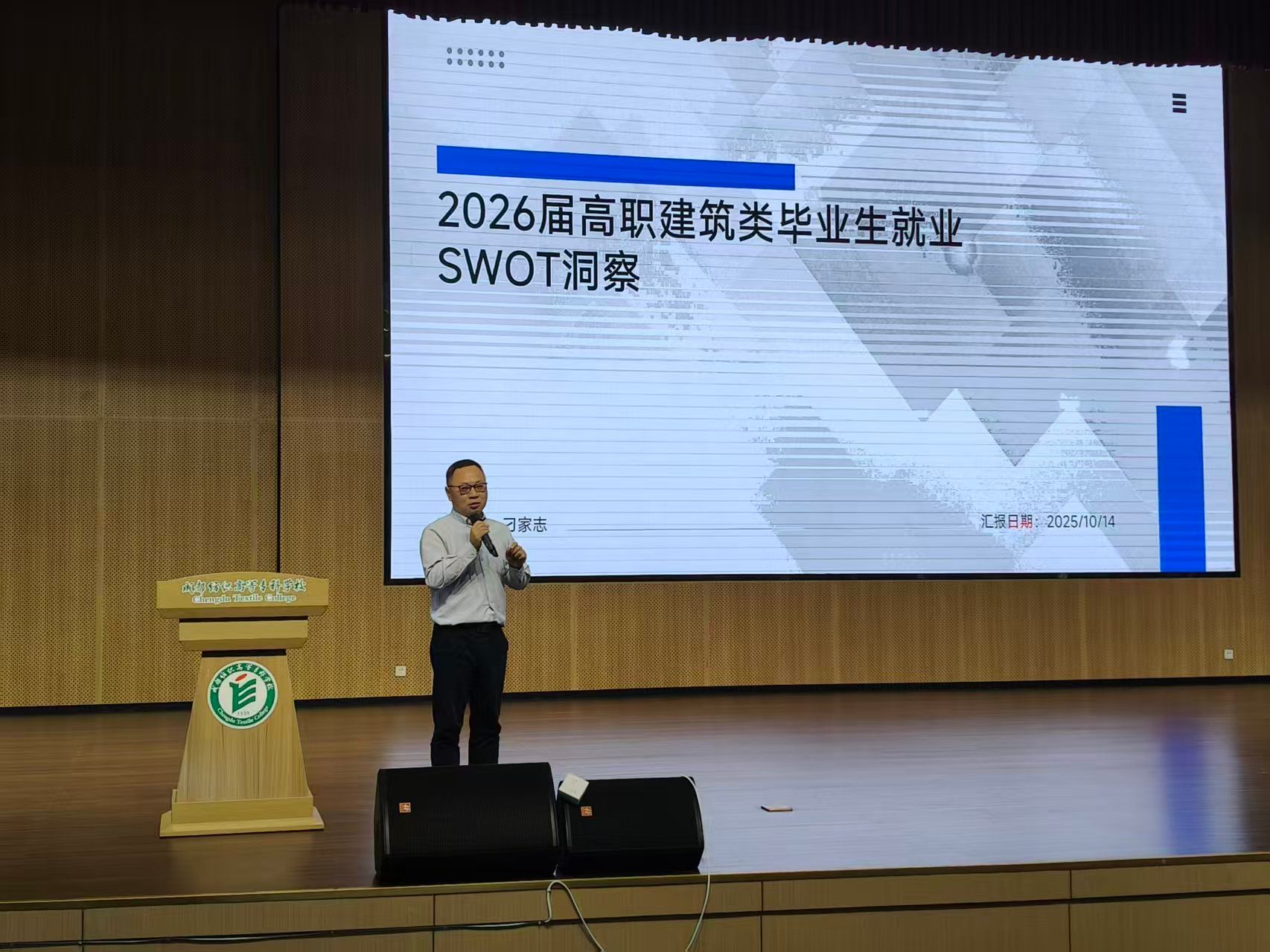 随后,秦朝昭围绕就业形势展开专业解读,从行业背景、就业严峻现状、原因分析及学生应对策略四个维度深入阐述。他结合智能建造与环境工程领域发展动态,梳理行业人才需求方向与结构变化;客观剖析当下就业市场岗位竞争加剧、部分领域需求收缩等挑战;从经济环境、行业转型、人才供需匹配度等方面,阐释就业压力产生的深层逻辑;最后提出应对策略,强调同学们需结合行业需求优化知识结构、关注岗位动态精准定位,通过强化实践能力、提升职业素养增强竞争力,以理性认知与积极行动应对就业挑战。