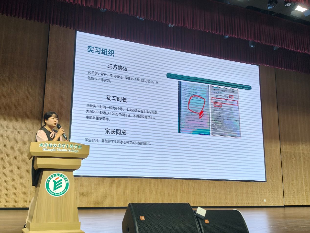 周雪明针对实习安排与离校手续办理程序进行详细讲解。明确实习组织的整体规范,说明实习期间的具体要求、实习考核的标准与流程,同时强调办理相关手续及参与实习过程中的注意事项,为同学们清晰梳理了实习与离校环节的关键要点,助力大家有序推进毕业前各项准备工作。